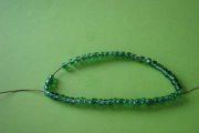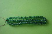Далее следует сплести для нашего гиацинта листья. Без них цветок не будет выглядеть полноценно и законченно. Гиацинт из бисера должен иметь такие же листья, как настоящий, и, значит, они будут длинными, тонкими и неразрезными. Плетение их осуществляется по тому же принципу, что и лепестков, но значительно изменяется количество бисеринок. Для одного листика потребуются проволока длиной не менее 70 сантиметров и зеленый бисер. На отрезок надо надеть 50-60 (в зависимости от размера бисера их может быть больше или меньше) бисеринок и, разделив пополам, сделать овал как для лепестка. За тем, так же как и на лепестке, делаем средний ряд. Длина листа должна быть около 10 см. Для одного цветка будет вполне достаточно пяти листочков.