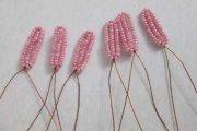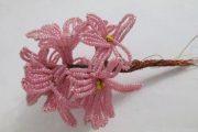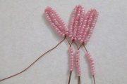 Начинать плетение следует с лепестков цветка. Для одного лепестка нужна проволока длиной 25-30 см. Надев на ее отрезок 30 бисеринок, разделяем их пополам. Нижний конец проволоки нужно продеть в 15 верхних бисеринок и протянуть. Так вы получите овал. На этом изготовление лепестка не заканчивается. На любой конец проволоки следует набрать 12-14 бисерин, количество зависит от их размера. За этим следует разместить их в середине овала (бисеринки должны точно доходить от одного конца к другому) и перекрутить между собой оба кончика проволочки. Бисер должен лечь точно по центру без смещения. На этом плетение одного лепестка заканчивается. Для цветка потребуется 6 лепестков. Для гиацинта из бисера надо изготовить не меньше 20 цветочков.