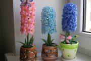 Если гиацинт будет иметь в своей стрелке больше 20 цветов, проволочки лучше накручивать на жесткий стерженек нужной длины, а не просто скручивать между собой.