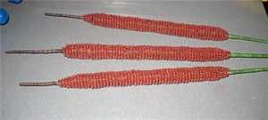 Чтобы сделать своими руками камыш небольшой формы, возьмите для стеблей по три проволочных отрезка, а для более пышной формы – пять либо шесть. Дополнительно возьмите еще одну проволочку и разрежьте ее на отрезки по пять – семь сантиметров. Данные элементы будут вершиной камыша. Отсутствие у вас специальной проволоки для цветов можно заменить обыкновенными скрепками из канцелярского магазина. Их просто следует выпрямить и также зафиксировать на вершине.