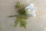 Готовый цветок, прикладывается к вершине будущего стебля, оставшиеся отрезки проволоки – обматываются вокруг него. Если есть возможность – прикрепите ромашку из бисера к стеблю с изнанки капелькой клея из клеевого пистолета. Он быстро остывает, прозрачный и будет незаметен.