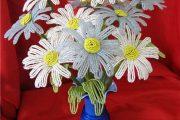 Готовые ромашки из бисера нужно поместить в вазу. Она подбирается, соответственно размеру и высоте цветов. Варианты оформления букета, можно посмотреть на видео. Если букет планируется дарить, вместе с вазой, то цветы можно зафиксировать с помощью гипсового раствора.