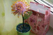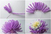 Теперь, одну за одной необходимо прикрепить все созданные фиолетовые петли, начиная с наименьших и скрепить кончики проволочки при помощи еще одного проволочного отрезка. Далее, своими руками необходимо расправить лепесточки и слегка выгнуть их к верху.
