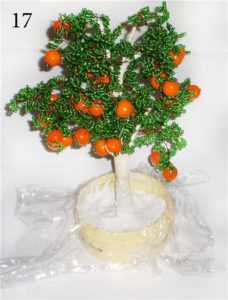 Для многих начинающих мастериц апельсиновое дерево кажется очень экзотическим, и поэтому они считают, что его трудно сплести из бисера. Но это совсем не так. Рассмотрев предложенные уроки плетения бисером, вы поймете, что каждый желающий сможет сделать такую поделку своими руками. Апельсиновое дерево будет радовать вас своими ярко-оранжевыми плодами, напоминая даже зимой о летнем солнышке. Такое дерево можно преподнести в виде подарка на какой-нибудь небольшой праздник.