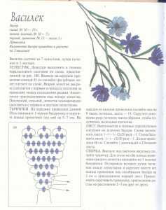 Продолжаем плести василек согласно этого мастер-класса со схемами. Опять возьмите основной материал, только уже длиной сорок пять сантиметров и начинаем изготавливать синий лепесток.