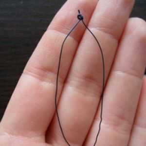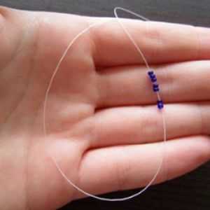 После того, как вы приготовили все материалы, можно приступать к самому мастер-классу. Отрежьте проволоку протяженностью полтора метра. Потом нанизывайте 7 голубых бисерин и расположите их, оставив несколько сантиметров от края, как показано на фото.