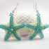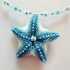Мастер-класс скоро подойдет к своему завершению, так как нам остается выполнить плетение последнего ряда изделия из бисера. Наберите бусинки в следующем порядке: стеклярус, потом голубой элемент и опять то, что набиралось первым. Протяните отрез с бисеринами через верхушку соседнего лучика звездочки, как изображено на фото.