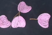 Начинаем мастер-класс с плетения лепестков для цветка. Возьмем проволочку длиной 0,6 м. Далее делаем скрутку на одном кончике проволочки на пару оборотов и нанизываем бисерины розового цвета в таком количестве, чтобы мы могли впоследствии сделать с их помощью три витка. На другом кончике формируем петельку с осью, куда нанизываем пять бисерин розового цвета. Теперь бисерной низкой производим три витка около оси. Накладывайте проволочку на ось поверху, для того, чтобы у вас лицевые петельки вышли аккуратными. Далее, нанизываем бисеринки таким образом, чтобы набранная низка не доходила до оси на несколько бисерин. Теперь нужно продеть проволочку снизу (отводим в ее в бок, закрепляем), нанизать розовые бисеринки и вернуть ее вниз. Со второго края делаем тоже самое. Всего нам нужно сплести шесть лепесточков. На фото отображен процесс формирования заготовок для цветка шиповника: