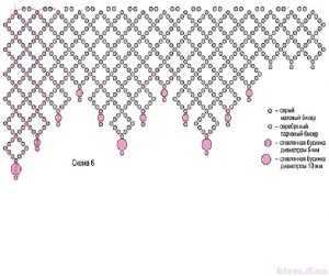 Еще можно использовать рисунок, так называемого ожерелья. Его принцип действия такой же, как и у сот. Увеличивая бисерины, у вас будет увеличиваться объем, а уменьшая элементы, соответственно, будете уменьшать и само изделие.