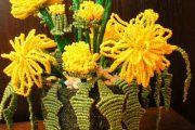 Желтый цветок одуванчика плетется, используя петли, которые следует располагать на длинной проволоке не особо плотно по отношению друг к другу.