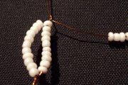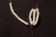 Теперь отделяем следующие одиннадцать бисеринок от бисерной низки. Далее необходимо закрутить их вверху около основания на один виток.