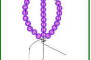 Для начала, набираем на проволочный отрезок в сорок сантиметров три бисерины зеленого цвета и передвигаем их к центру. Далее, кончики проволочки необходимо протянуть сквозь две бисеринки, которые находятся с края и затянуть. Таким образом, у нас получится два ряда.