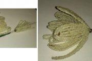 Петельку также нужно разрезать, концы проволоки загнуть и обрезать лишнее. Плетем еще 5 лепестков с 7 дугами. Теперь нужно сплести еще 14 лепестков из 11 дуг.