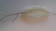 Чтобы оформить цветок, ему нужно сплести серединку. Не отрезая проволоку от мотка, нанизываем на нее бисеринки и скручиваем петли по 40-50 бисерин каждая. Между витками должно быть расстояние не более 5 мм. Так, набираем 10 петель.