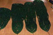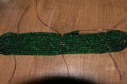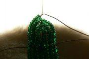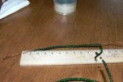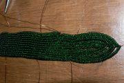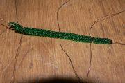 Начнем с того, что попробуем сделать элемент из бисера темно-зеленого цвета. Всего у нас их будет 4, абсолютно одинаковых по технике исполнения, но разные по длине с 1 см в сторону увеличения. Самый маленький – 7 см.