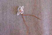 Верхний конец оси прячете на нижней стороне листочка, а оставшийся край – соединяете с черешком (петелька листа)