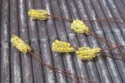 Когда плетение рядов закончено, оставшийся бисер с проволоки нужно убрать, а проволоку закрутить с одной из сторон лепестка. Оставляем приблизительно 10 сантиметров проволоки для соединения лепестков в полноценный цветок. Остальную проволоку отрезаем. Для формирования нарцисса потребуется всего шесть таких лепестков.