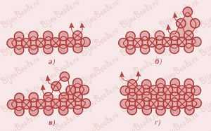 Затем следует вывести иголку в верхнюю часть полученного звена, и продолжать работать следующим образом: нанизываются 3 бусины на основную фурнитуру, а потом ее вводят в последнюю стекляшку предыдущей полосы. Если бисерная цепочка начала становиться неровной, то лучше ее поровнять собственноручно, вернувшись назад тот бисер, который выбился из общего р.