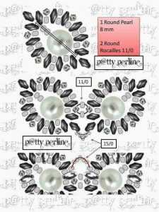 Во внутреннюю часть поделки вставьте 2 бусины и одну крупную жемчужину с перламутром. В итоге у вас получится первый глазик для этого пернатого. Аналогичным образом сформируйте и следующий глаз. После этого из нужно соединить друг с другом с помощью мелкого бисера. На схематическом рисунке наилучшим образом показан такой процесс.