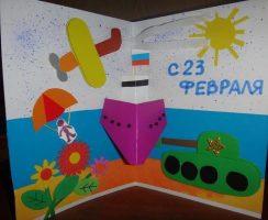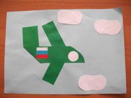 С выполнением сложной объёмной аппликации справятся дети в старшей группе. Бумажные части приклеиваются в несколько слоёв или с использованием техники оригами. Детки смогут сложить бумажный кораблик или самолёт с помощью оригами и использовать их для своей аппликации. Также можно попробовать сделать объёмное поздравление для папы: открытку с сюрпризом.