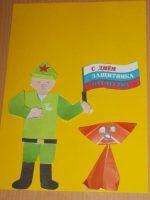 Мастер-класс предлагает сделать поздравление к 23 февраля в виде аппликации. С такой несложно, но интересной работой справятся как начинающие, так и детки в детском саду.