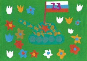 - контурный тематический рисунок (танк, флаг, цифра 23 и т.д.);