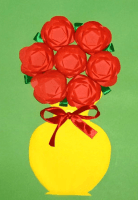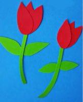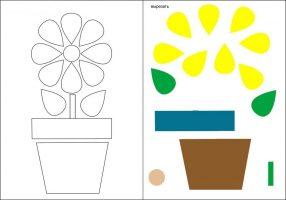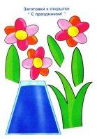 Смотря от того, кто из детей на что способен, каждый может выполнить свою композицию из 1, 2 или 3 цветов, наклеенных на заготовку открытки.