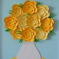 В старшей группе маме на день рождения можно уже выполнить целую композицию. Воздушные и нежные картинки получаются, если использовать скатанные в шарики салфетки.