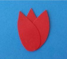 - На средний лепесточек наклеивайте крайние. Получаем бутон.