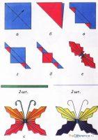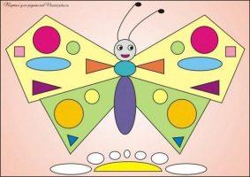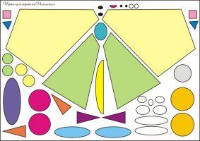 Геометрические фигуры. Этим способом делаются любые поделки, посмотрите, какими способами изготовить бабочек только из геометрических фигур и с частичным их использованием. Начинающим малышам, которые знакомятся с фигурками, надо предлагать самое простое: