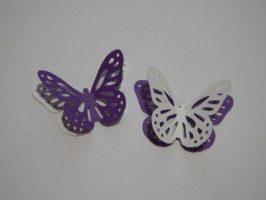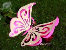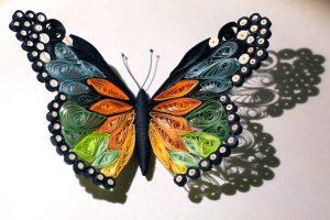 Если верхний элемент выполнить в другом цвете и вырезать внутри узоры, получится ажурная объемная бабочка: