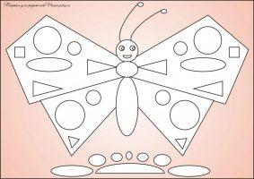 - Оформите рисунок из простых фигур на крыльях бабочки.