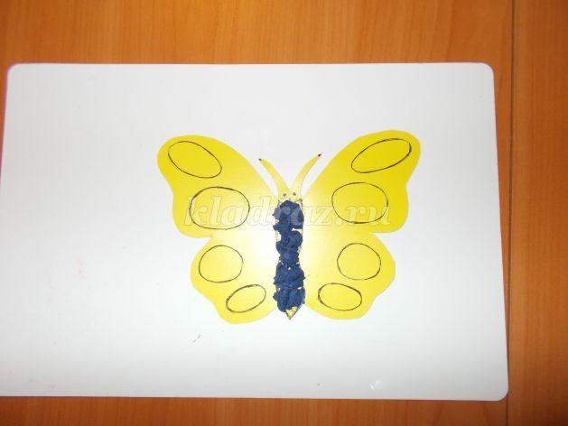 - Намазывайте поочередно каждую часть бабочки, как только намажете – наклеивайте шарики.