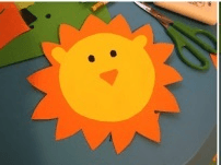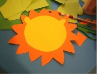 - Вырезав заготовочки, дошколята должны будут аккуратно приклеить их: