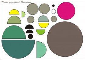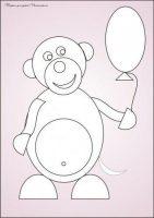 Так, например, из овалов будут сформированы глаза, туловище, передняя лапка. Голову будем делать из цельного круга, а заднюю лапку, ушки – из половинок.