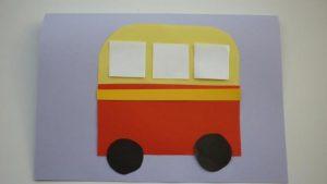 Почему бы не распечатать шаблон настоящего автобуса и не сделать аппликацию из него? Мальчишки будут в восторге. Можно предложить каждому самому выбрать любимую модель. Тогда получится целый автобусный парк из разных машинок, которые будут смотреть точь-в-точь, как настоящие!