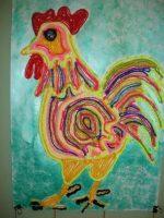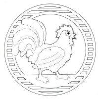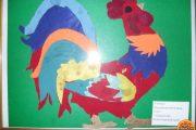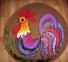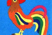 - вырезать изображение петуха и перевести или приклеить его к основе;