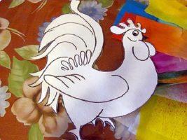 - изобразить на плотном картоне силуэт петуха (обвести по контуру шаблон);