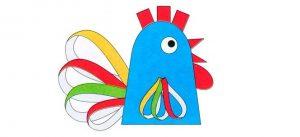 Также можно сделать петушка из полос цветной бумаги пользуясь инструкцией приведённой ниже: