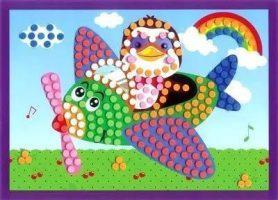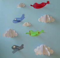Эта поделка немного сложнее предыдущей, и в основном выполняется дошкольниками из средней группы. Такая картинка интересна тем, что ее можно сделать как коллективную работу. Каждый малыш может приклеить свой самолетик, свою деталь и тем самым внести свой вклад.