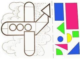 Знакомство с миром геометрических фигур необязательно начинать с учебника. Детишкам будет гораздо интереснее изготовить аппликацию самолетик из разных фигурок – кружочков, полукружочков, треугольников и других.