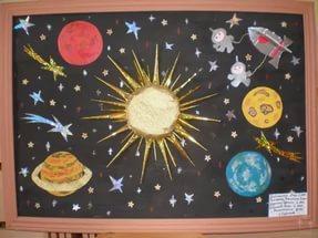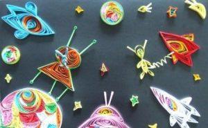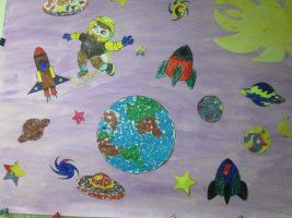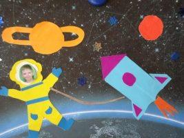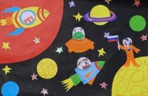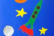 День космонавтики – обширная тема. Можно посетить планетарий или устроить ролевую игру в космонавтов. И, конечно же, это тематические работы, в том числе аппликации. Можно оформить композицию, где в роли исследователя космоса будет сам творец – для этого возьмите фотографию нужного размера и «оденьте» ее в костюм, а вокруг создайте ночное небо со всеми атрибутами, включая ракету.