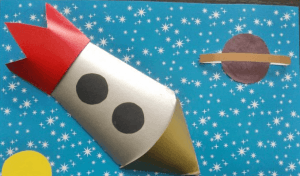 Из втулки создайте объемную ракету с реальным названием и приделайте ее к основе: