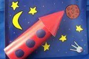 Аппликация ракеты – хороший ход, подойдет для детей разных возрастов, в том числе в детском саду. Конечно, есть и много других вариантов поделок, но они, как правило, делаются с использованием каких-то специальных материалов и инструментов под наблюдением взрослых. Простенькую аппликацию под силу выполнить самому практически любому дошкольнику.