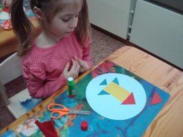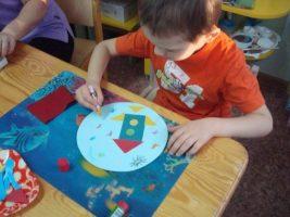 Самым маленьким, начинающим пользоваться ножницами и клеем, надо предлагать уже готовые фигуры, заранее вырезанные взрослым из цветной бумаги. Ребенок должен посмотреть на пример, выполненный воспитателем и приклеить детали своими руками. Тут уж как получится!