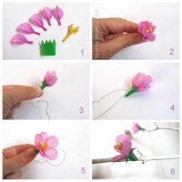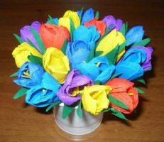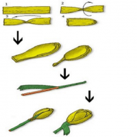 Это только некоторые примеры аппликации из гофрированных листов. Из гофры также получатся тюльпаны и подснежники. Схемы создания показаны ниже.