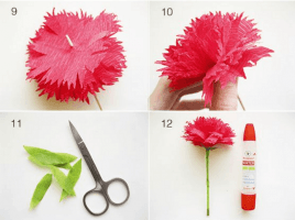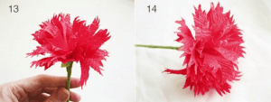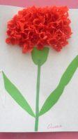 Из гофрированной бумаги можно сделать красивую пышную гвоздику: