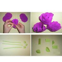- Из зелёной бумаги вырезать чашелистик и стебель, приклеить к венчику.