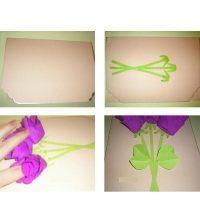 - Зелёный картон согнуть пополам и наклеить сверху лепестки крест-накрест.