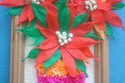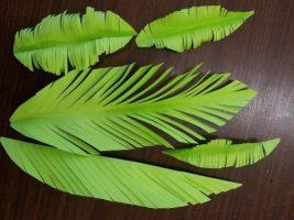 - Вырезать из сложенной бумаги вытянутые листики и дополнить композицию.
